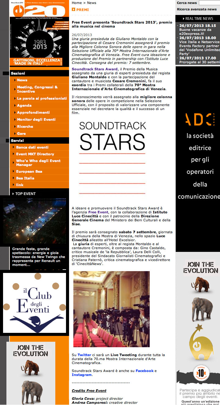 Free Event presents ‘Soundtrack Stars 2013’, award to music in film